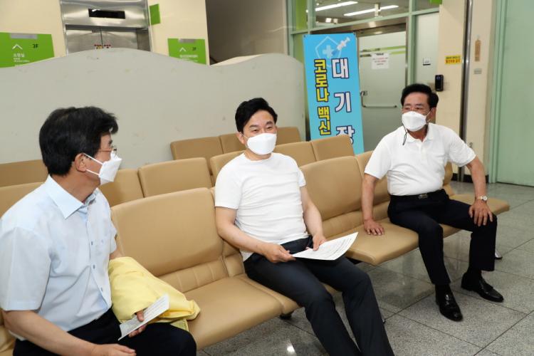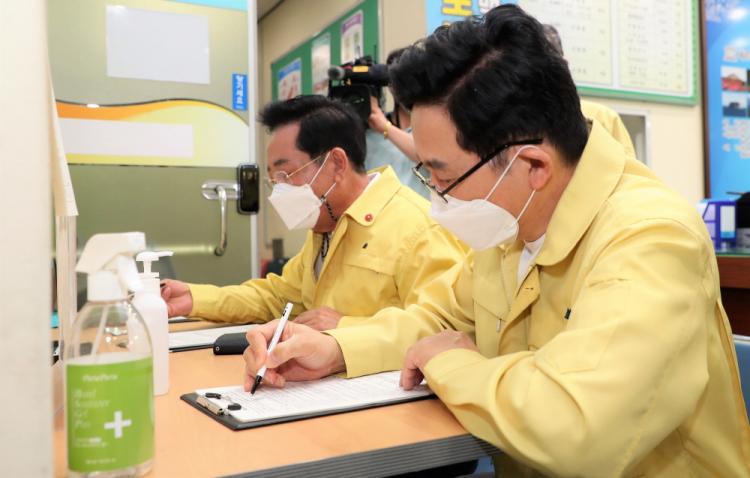 | ¿øÈñ·æ Áö»ç¿Í Á³²¼ö ÀÇÀå, À̼®¹® ±³À°°¨ Äڷγª19 ¹é½Å ÇÔ²² Á¢Á¾ |