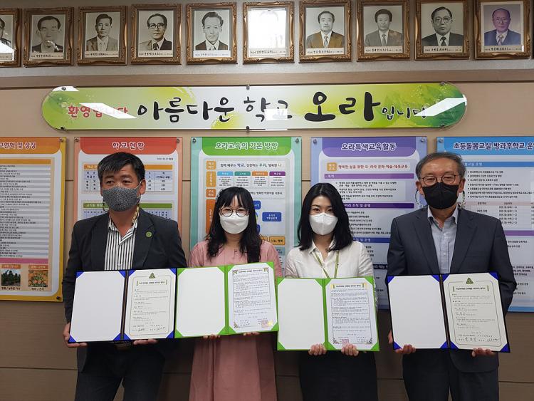 [Á¦ÁÖµµ¹Î½Å¹® = ¿ÀÁØÇõ ±âÀÚ] ¿À¶óÃʵîÇб³(±³Àå ¾ç¼ø¿í)´Â Áö³ 5¿ù 28ÀÏ(±Ý) ±³Àå½Ç¿¡¼ ¿À¶óµ¿ ¿¬ÇÕû³âȸ(ȸÀå ¹ÚÁö¼º), ¿À¶óµ¿ û¼Ò³àÁöµµÀÚÇùÀÇȸ(ȸÀå ¹ÚÈ«ÀÍ), ±Â³×À̹ö½º Á¦ÁÖÁöºÎ(ÆÀÀå °Áö¹Î)¿Í Çб³Æø·Â¿¹¹æ ±³À°È°µ¿ ³×Æ®¿öÅ© Çù¾àÀ» ü°áÇÏ¿´´Ù.