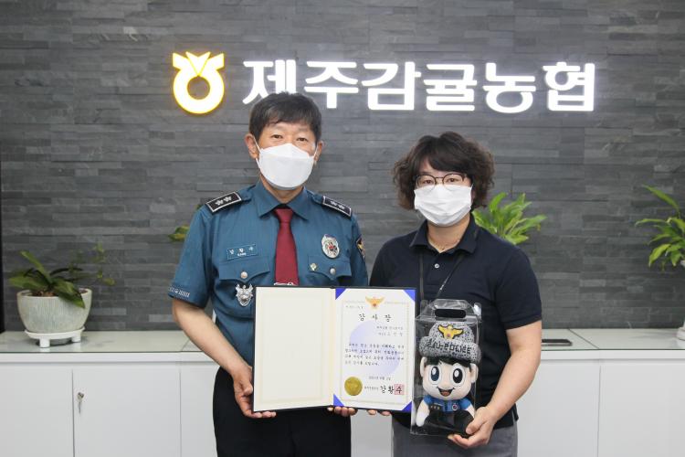 ¶ÇÇÑ Á¦ÁÖ°æÂûûÀåÀº 6¿ù 2ÀÏ Á¦ÁÖ°¨±Ö³óÇù û»ç·ÎÁöÁ¡À» ã¾Æ º¸À̽ºÇÇ½Ì ÇÇÇØ ¿¹¹æ¿¡ ±â¿©ÇÑ °í¹ÎÁ¤ °úÀ庸¿¡°Ô ½Å°íº¸»ó±Ý°ú °¨»çÀåÀ» Àü´ÞÇß´Ù.