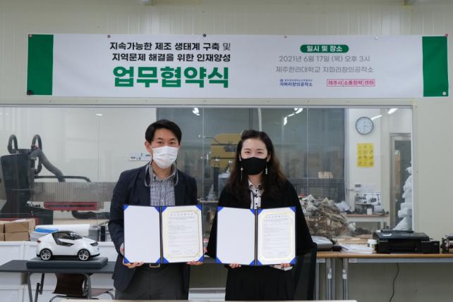 ÀÌ ÇÁ·ÎÁ§Æ®¸¦ ÅëÇØ ±³À°ÇÁ·Î±×·¥ 3ȸ, ½Ã¹ÎÂü¿©Çü Á¦ÀÛ¿öÅ©¼ó 17ȸ°¡ ÁøÇàµÇ¾úÀ¸¸ç, Áö¿ª¸ÞÀÌÄ¿ 15¸í ¹× ÁֹΠ73¸íÀÌ Áö¼Ó°¡´ÉÇÑ Á¦Á¶ ¹æ½ÄÀ» °æÇèÇß´Ù. À̳¯ Çù¾àÀº Á¦ÁÖÀÇ Áö¼Ó°¡´ÉÇÑ Á¦Á¶ »ýÅÂ°è ±¸Ãà°ú À̸¦ À§ÇÑ ÀÎÀç ¾ç¼ºÀ» µµ¸ðÇϰíÀÚ ÀÌ·ïÁ³´Ù. ÇâÈÄ Áö¿ª ¹®Á¦ÇذáÀ» À§ÇÑ ¸ÞÀÌÄ¿ ¹ß±¼°ú À̵éÀ» ÈÆ·ÃÇÒ ¼ö ÀÖ´Â °øµ¿ÇÁ·Î±×·¥À» ÃßÁøÇÒ °èȹÀÌ´Ù. ÁÖ¿ä Çù¾àÀº ¡ãÁö¿ª ¹®Á¦ÇذáÀ» À§ÇÑ ¸ÞÀÌÄ¿ ¹ß±¼ ¹× ÇÁ·Î±×·¥ °³¹ß ¿î¿µ ¡ã±³À°ÇÁ·Î±×·¥ ÁøÇà¿¡ µû¸¥ Ȱµ¿°ø°£, ÀÎÇÁ¶ó µî »óÈ£ º¸À¯ ÀÚ¿ø °øÀ¯ ¡ãÁö¼Ó°¡´ÉÇÑ Á¦Á¶ ¹®È È®»ê¡¤Àúº¯ È®´ë¸¦ À§ÇÑ ¸ÞÀÌÄ¿½ºÆäÀ̽º »ç¾÷ ºÐ¾ß Çù·Â¿¡ °üÇÑ ³»¿ëÀ» ´ã°í ÀÖ´Ù. Á¦ÁÖÇѶó´ëÇб³ »êÇÐÇù·Â´Ü ¸ÞÀÌÄ¿½ºÆäÀ̽º¼¾ÅÍ Çã°æ¿ø ¼¾ÅÍÀåÀº ¡°À̹ø Çù¾àÀ» ÅëÇØ Áö¿ª ³» ¸¹Àº »ç¶÷ÀÌ »ó»óÇÏ´Â °ÍÀ» ½º½º·Î Á¦ÀÛÇÏ¿© Áñ°Å¿î âÀÛÀÚ°¡ µÇ´Â ¸ÞÀÌÄ¿ ¹®È¸¦ °æÇèÇÏ±æ ¹Ù¶õ´Ù¡±¶ó°í ÀüÇß´Ù. ¹Îº¹±â ¼¾ÅÍÀåÀº ¡°Á¦ÁÖÀÇ Áö¼Ó°¡´ÉÇÑ Á¦Á¶(¤¸¤¸¤¸)ÇÁ·ÎÁ§Æ®´Â Áö¿ªÀÚ¿ø ¹× ÀÎÇÁ¶ó¸¦ Ȱ¿ëÇÏ¿©, ¿ÀÇ ¸ÞÀÌÅ· ¹æ½ÄÀ¸·Î ÇÔ²² ¸¸µå´Â °øÀ¯Áö °³³äÀ» ÀÚ¿¬½º·´°Ô ÀÍÈ÷´Â °úÁ¤ÀÌ´Ù¶ó°í ¸»Çϸç,¡°À̹ø Çù¾àÀ» °è±â·Î Áö¿ªÀÇ ´Ù¾çÇÑ ÁÖüµéÀÌ Á¦ÁÖÀÇ Áö¼Ó°¡´ÉÇÑ Á¦Á¶ ¹®È¸¦ °æÇèÇÒ ¼ö ÀÖ´Â ±âȸ°¡ ¸¹¾ÆÁö±æ ¹Ù¶õ´Ù¡±°í ¸»Çß´Ù. Á¦ÁֽüÒÅëÇù·Â¼¾ÅÍ¿¡¼´Â µðÁöÅÐ µµ±¸(¿ÀǼҽº¡¤CNC)¸¦ Ȱ¿ëÇÑ Á¦ÀÛ±â¼úÀ» ½ÀµæÇϰí, °ø¿ë°¡±¸¸¦ Á¦ÀÛÇØº¸´Â 2021³â <Á¦Á¶ÇÏ´Â ÀçÁÖ°¡ ÁÁ¾Æ> ½ÉȰúÁ¤ Âü¿©ÀÚ¸¦ ¿À´Â 6¿ù 22ÀϱîÁö ¸ðÁýÇϰí ÀÖ´Ù.