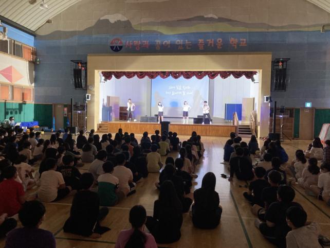 µµ³»¿¡¼ Çб³Æø·Â¿¹¹æÀ» À§ÇØ È°¹ßÇÏ°Ô °ø¿¬È°µ¿À» Çϰí ÀÖ´Â ¡º¼¶¾ÆÀÌ ¹ÂÁöÄựشܿ¡¼ ¿ì¸® Çб³¸¦ ¹æ¹®ÇÏ¿© ¡®È¥ÀÚ°¡ ¾Æ´Ï¾ß.¡¯¶ó´Â ÁÖÁ¦·Î ÇлýµéÀÇ ´«³ôÀÌ¿¡ ¸ÂÃç °ø¿¬À» ÁøÇàÇß´Ù.