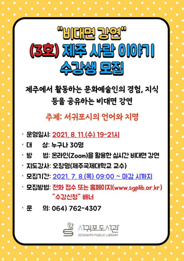 À̹ø °¿¬¿¡¼´Â ¿Àâ¸í Á¦ÁÖ±¹Á¦´ëÇб³ ±³¼ö¸¦ ¸ð½Ã°í¡®¼±ÍÆ÷½ÃÀÇ ¾ð¾î¿Í Áö¸í¡¯À» ÁÖÁ¦·Î ÁøÇàµÇ¸ç, ºñ´ë¸é ¿Â¶óÀÎ(Zoom) ¹æ½ÄÀ» ÅëÇØ ¿À´Â 8¿ù 11ÀÏ(¼ö) ¿ÀÈÄ 7-9½Ã¿¡ ¿î¿µÇÑ´Ù.