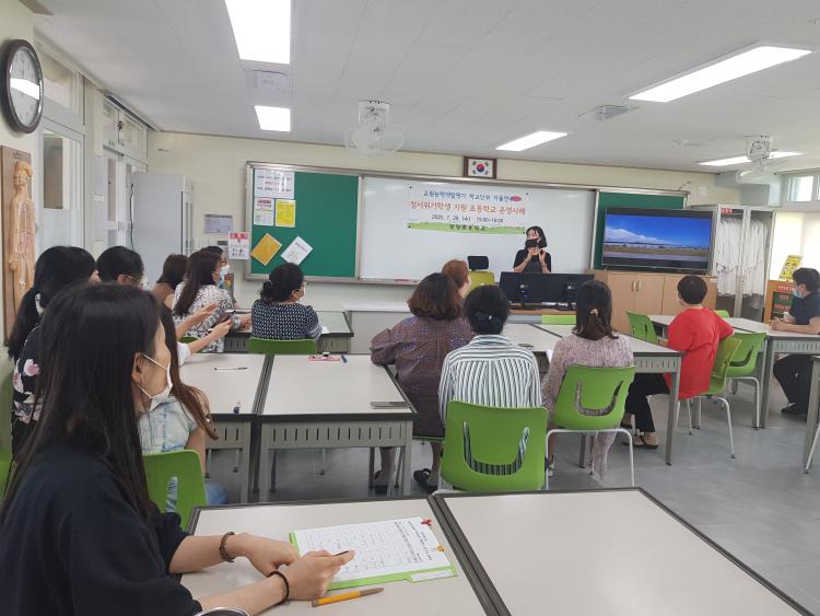 µµ¼øÃÊ ±³»ç °ÈñÁø ¼±»ý´ÔÀ» ¸ð½Ã°í ¡®Á¤¼À§±âÇлý Áö¿ø ÃʵîÇб³ ¿î¿µ»ç·Ê¡¯¶õ ÁÖÁ¦·Î Á¤¼ÀûÀ¸·Î À§±âÀÎ ÇлýµéÀ» À§ÇØ ÇÐ±Þ ³»¿¡¼ ´ãÀÓ ±³»çÀÇ Áö¿ø ¹× Çб³½Ã½ºÅÛÀûÀ¸·Î Áö¿ø ÇÏ´Â ¹æ¾È µî ±¸Ã¼ÀûÀÎ »ç·Ê¸¦ µé¾ú´Ù. ÇÐ±Þ ³» Áö¿ø ¹æÀ¸·Î´Â ´Ù¾çÇÑ ¹Ì´ö µîÀ» ÅëÇÑ ÁÖº¯ÀÇ µçµçÇÑ È¯°æ ¸¸µé±â, °°ÀÌ ÀÌÇØÇÏ´Â °¥µî ÁßÀç Ȱµ¿, ±× Çлý¸¸À» À§ÇÑ °³º°È ±³À° ½Ç½Ã µîÀÌ ÀÖ´Ù.