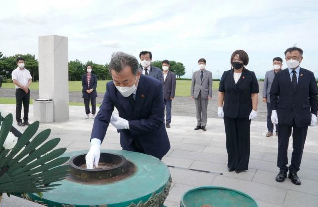 Ȳ ÀÌ»çÀåÀº ¡°Á¦ÁÖ 4.3Àº ÀϾ¼± ¾È µÉ »ç°ÇÀ̾úÀ¸¸ç, °ø´Ü ÀÓÁ÷¿øµéÀº 4.3 Èñ»ýÀÚ¿Í À¯°¡Á·µéÀÇ °íÅë°ú ¾ÆÇÄÀ» ±â¾ïÇϸç, µû¶æÇÑ º½À¸·Î ±â¾ïµÉ ¶§±îÁö °ø¹«¿ø¿¬±Ý°ø´ÜÀÌ ´Ã ÇÔ²² ÇϰڴÙ.¡±°í ¸»Çß´Ù.