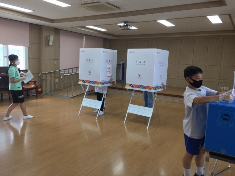 À̳¯ ¾ÆÄ§¿¡´Â ¾ÆÄ§¹æ¼ÛÀ» ÅëÇØ Èĺ¸ÀÚµéÀÌ ¼Ò°ßÀ» ¹ßÇ¥ÇÏ¿´°í, 5±³½Ã¿¡ ´Ù¸ñÀû½Ç¿¡¼ 4‧5‧6Çгâ ÅõÇ¥ÀÎ 75¸íÀÌ Çб³ÀÇ ´ëÇ¥·Î¼ Ȱµ¿ÇÒ Èĺ¸¿¡°Ô ¼ÒÁßÇÑ ÇÑ Ç¥¸¦ º¸³Â´Ù. ÅõÇ¥ Àü ÅõÇ¥ÀÇ ÀÇ¹Ì¿Í ÅõÇ¥ÀÇ ¿øÄ¢À» ¹è¿üÀ¸¸ç, ÅõÇ¥¼Ò¿¡¼´Â ¹ß¿Ã¼Å©, ¼Õ¼Òµ¶, ºñ´ÒÀå°© Âø¿ë, ÅõÇ¥ÀÚ °£ °Å¸®µÎ±â ±ÔÄ¢À» ÁؼöÇß´Ù. ÅõÇ¥°á°ú 6Çг⠱èÁÖÇö ¾î¸°À̰¡ Á¦2±â Àü±³¾î¸°ÀÌȸÀå¿¡ ´ç¼±µÇ¾úÀ¸¸ç, 6Çг⠱èÇö⠾ÀÌ¿Í 5Çгâ À̼öÁø ¾î¸°À̰¡ ºÎȸÀå¿¡ ´ç¼±µÇ¾ú´Ù.