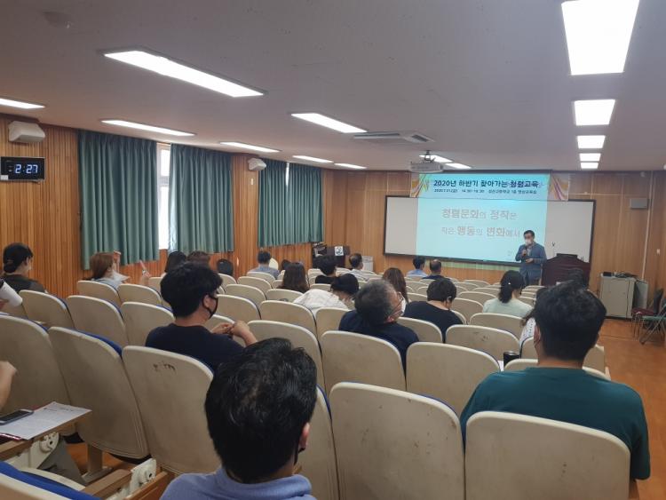 [Á¦ÁÖµµ¹Î½Å¹® = ¿ÀÁØÇõ ±âÀÚ] Á¦ÁÖÆ¯º°ÀÚÄ¡µµ±³À°Ã»(±³À°°¨ À̼®¹®)Àº Àϼ± Çб³¸¦ ´ë»óÀ¸·Î ã¾Æ°¡´Â û·Å ±³À°¸¦ ½Ç½ÃÇß´Ù. À̹ø ±³À°Àº¡®Ã»·Å¹®È­ÀÇ Á¤ÂøÀº ÀÛÀº ÇൿÀÇ º¯È­¿¡¼­¡¯¶ó´Â ÁÖÁ¦·Î Á¤¼öÇö ±¹¹Î±ÇÀÍÀ§¿øÈ¸ û·Å±³À°Áö¿ø´Ü °­»ç¸¦ ÃÊûÇÏ¿© Áö³­ 7¿ù 31ÀÏ(±Ý) ¼º»ê°íµîÇб³ ±³Á÷¿ø 40¿©¸íÀ» ´ë»óÀ¸·Î ½Ç½ÃÇÏ¿´´Ù. À̳¯ ±³À°¿¡¼­ ¼º»ê°íµîÇб³ ±³Á÷¿øµéÀº °øÁ÷»ýȰ¿¡¼­ ²À ÇÊ¿äÇÑ ¹ÝºÎÆÐ ¹ý·É Áö½ÄÀ» üµæÇϰí ûʱÝÁö¹ý, °ø¹«¿øÇൿ°­·É À§¹Ý»ç·Ê¸¦ ¼÷ÁöÇÒ ¼ö ÀÖ´Â ¸ÂÃãÇü û·Å±³À°À» ÅëÇØ û·ÅÀÇÁö¸¦ ´ÙÁö´Â ½Ã°£À» °¡Á³´Ù. ÇÑÆí, ¡®Ã£¾Æ°¡´Â û·Å±³À°¡¯Àº µµ³» Çб³ ¹× ±³À°ÇàÁ¤±â°üÀ» ´ë»óÀ¸·Î ±¹¹Î±ÇÀÍÀ§¿øÈ¸ û·Å°­»ç¸¦ Ȱ¿ëÇÏ¿© Á¦ÁÖµµ±³À°Ã» »êÇÏ ±³Á÷¿øµéÀÇ Ã»·Å±³À° Áö¿øÀ» À§ÇØ ÀÛ³âºÎÅÍ ½ÃÇàÇØ ¿À°í ÀÖ´Ù.