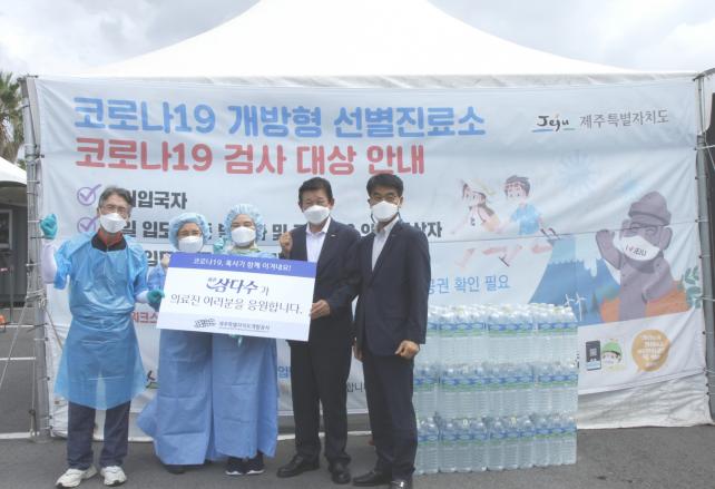 Á¦ÁÖ°³¹ß°ø»ç´Â Á¦ÁÖ±¹Á¦°øÇ× ¼±º°Áø·á¼Ò¿¡¼ ±Ù¹«ÇÏ´Â ÀÇ·áÁøµé¿¡°Ô Á¦ÁÖ»ï´Ù¼ö 500mL ¹× 2L ÃÑ 2,520º´À» Àü´ÞÇß´Ù°í ¹àÇû´Ù.