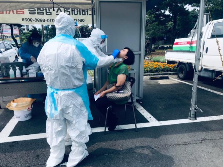[Á¦ÁÖµµ¹Î½Å¹® = ³²Àç¿Á ±âÀÚ] ¼±ÍÆ÷½Ã µ¿ºÎº¸°Ç¼Ò(¼ÒÀå °¹Ì¾Ö)´Â Áö³ 3ÀÏ Áý´ÜÀ¸·Î Äڷγª-19 ȯÀÚ ¹ß»ý ½Ã ÀÚµ¿Â÷ À̵¿Çü(Drive Thru) ¿ø½ºÅé ¼±º°Áø·á¼Ò ¿î¿µÀ¸·Î ¾ÈÀüÇϰí È¿À²ÀûÀÎ ´ë±Ô¸ð °Ëü äÃ븦 Çϱâ À§ÇØ ÀÚü ¸ðÀÇÈÆ·ÃÀ» ½Ç½ÃÇÏ¿´´Ù
