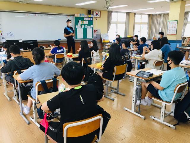 ±¤¾çÃʵîÇб³ Çб³Àü´ã°æÂû°ü(Á¦ÁÖÀÚÄ¡°æÂû´Ü ¼Ò¼Ó)ÀÌ 6Çг⠱³½ÇÀ» ¹æ¹®ÇÏ¿© Çб³Æø·Â ¹ß»ý »ç·Ê¸¦ Áß½ÉÀ¸·Î ÇлýµéÀÌ ¾Ë¾ÆµÎ°í ÁöÄÑ¾ß ÇÒ °Íµé¿¡ ´ëÇØ À̾߱⸦ ³ª´©°í Áú¹®µµ ¹Þ¾Ò´Ù. Çб³ Æø·ÂÀ¸·Î Èûµé¾îÇÏ´Â ÇлýµéÀÇ »ç·Ê¸¦ Áß½ÉÀ¸·Î Çб³ Æø·ÂÀÇ À¯Çü°ú ´ëó ¹æ¹ý, ÇØ°á ¹æ¹ý¿¡ ´ëÇØ ¾Ë¾Æº¸°í Çб³Æø·Â Á¦·Î ¼¾à¼¸¦ ¾²¸é¼ Çб³Æø·Â ¿¹¹æ°ú Æø·Â¾ø´Â Æòȷοî Çб³ »ýȰÀ» Çϱâ À§ÇØ ¼·Î Áöų ¾à¼ÓÀ» Á¤ÇÏ¿© ½ÇõÇϵµ·Ï Çϰí ÀÖ´Ù.