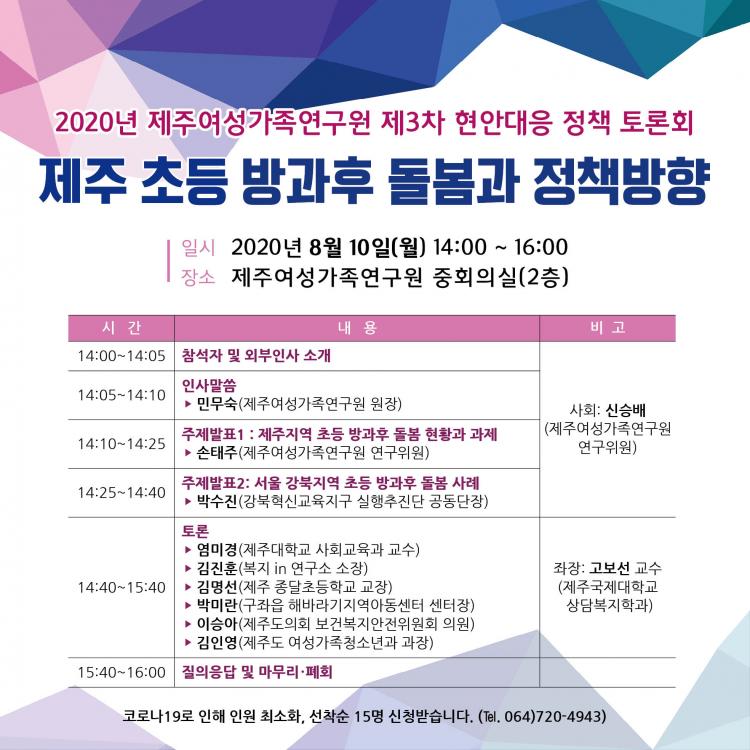 Åä·Ðȸ¿¡¼´Â ¼ÕÅÂÁÖ ¿¬±¸À§¿øÀÌ¡®Á¦ÁÖÁö¿ª ÃÊµî ¹æ°úÈÄ µ¹º½ ÇöȲ°ú °úÁ¦¡¯¿¡ ´ëÇÑ ÁÖÁ¦¹ßÇ¥¿Í ÇÔ²² ¹Ú¼öÁø ¼¿ï½Ã °ºÏÇõ½Å±³À°Áö±¸ ½ÇÇàÃßÁø´Ü °øµ¿´ÜÀåÀÌ ¡®¼¿ï °ºÏÁö¿ª ¸¶À» ¾È¿¡¼ÀÇ ¹æ°úÈÄ Æ´»õ µ¹º½¡¯»ç·Ê¸¦ ¹ßÇ¥ÇÑ ÈÄ, ÀÌ¾î¼ °íº¸¼± Á¦ÁÖ±¹Á¦´ëÇб³ ±³¼öÀÇ ÁÂÀåÀ¸·Î ¡ã¿°¹Ì°æ Á¦ÁÖ´ëÇб³ ±³¼ö ¡ã±èÁøÈÆ º¹Áö in ¿¬±¸¼Ò ¼ÒÀå ¡ã±è¸í¼± Á¦ÁÖ Á¾´ÞÃʵîÇб³ ±³Àå ¡ã¹Ú¹Ì¶õ ±¸ÁÂÀ¾ ÇØ¹Ù¶ó±â Áö¿ª¾Æµ¿¼¾ÅÍÀå ¡ãÀÌ½Â¾Æ Á¦ÁÖµµÀÇȸ º¸°Çº¹ÁöÀ§¿øÈ¸ ÀÇ¿ø ¡ã±èÀοµ Á¦ÁÖµµ ¿©¼º°¡Á·Ã»¼Ò³â°úÀåÀÇ Åä·ÐÀÌ ÁøÇàµÉ ¿¹Á¤ÀÌ´Ù.