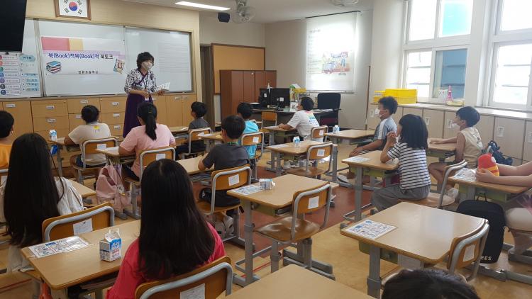 [Á¦ÁÖµµ¹Î½Å¹® = ³²Àç¿Á ±âÀÚ] ¹ýȯÃʵîÇб³(±³Àå ±è¾Ö¼÷)´Â ¸Å¿ù 1ȸ ¾ÆÄ§½Ã°£À» ÀÌ¿ëÇÏ¿© ±³Àå¼±»ý´Ô°ú ÇÔ²²ÇÏ´Â ºÏ(book)Àû ºÏ(book)Àû ºÏÅäÅ©¸¦ ¿î¿µÇϰí ÀÖ´Ù. Áö³­´Þ¿¡ À̾î 8¿ù 4ÀÏ(È­) ¾ÆÄ§½Ã°£¿¡´Â °¨Á¤À» Ç¥ÇöÇÏ´Â ¹ýÀ» ¹è¿ï ¼ö ÀÖ´Â ¡®42°¡Áö ¸¶À½ÀÇ »ö±ò¡¯ Ã¥À» ÀÌ¿ëÇÏ¿© 3Çгâ Çлýµé°ú °¨Á¤À» Ç¥ÇöÇÏ´Â ¹ý¿¡ ´ëÇØ À̾߱⸦ ³ª´³´Ù. °¡Àå ±âº»ÀûÀÎ °¨Á¤À» ±×¸² ¼ÓÀÇ µ¿¹°¿¡°Ô¼­ ã¾Æº¸±â, ±×¸²À» º¸°í ´À³¦À» À̾߱⠳ª´©±â, ƯÁ¤ °¨Á¤À» ´À²¼´ø ÀÚ½ÅÀÇ °æÇè À̾߱⠳ª´©±â µîÀÇ È°µ¿À¸·Î °¨Á¤À» ¼ÒÅëÇÏ¿´´Ù. ÀÌ È°µ¿À» ÅëÇÏ¿© ÀÚ½ÅÀÇ °¨Á¤À» Ç¥ÇöÇÏ°í ½ÍÀº ¸¶À½Àº Å«µ¥ Ç¥ÇöÀÌ ¼­Å÷ ÇлýµéÀÌ ÀÚ½ÅÀÇ °¨Á¤À» Ç¥ÇöÇÏ´Â ¹ýÀ» ¹è¿ì°í ±³Àå¼±»ý´Ô°ú °¨Á¤À» ³ª´©´Â ¼ÒÁßÇÑ ±âȸ°¡ µÇ¾ú´Ù.