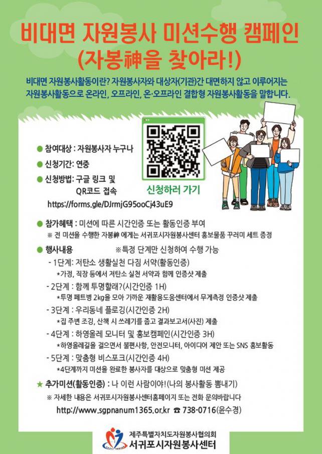 ÀÌ¿¡ µû¸£¸é 5´Ü°è·Î ³ª´¶ ¹Ì¼Ç ¼öÇà¹æ½ÄÀ¸·Î¼ 1´Ü°è(Àúź¼Ò »ýȰ ½Çõ ´ÙÁü ¼¾à) ¡æ 2´Ü°è(ÇÔ²² Åõ¸íÇÒ·¡?) ¡æ 3´Ü°è(¿ì¸® µ¿³× Ç÷αë*) ¡æ 4´Ü°è(ÇÏ¿µ¿Ã·¹ ¸ð´ÏÅ͸µ ¹× È«º¸ Ä·ÆäÀÎ) ¡æ 5´Ü°è(¸ÂÃãÇü ºñ½ºÆ÷Å©**)±îÁö·Î ±¸¼ºµÅ ÀÖ´Ù. ÀÌ·¯ÇÑ ºñ´ë¸é ºÀ»çȰµ¿¿¡ Âü¿©ÇÒ ºÐÀº ¼±ÍÆ÷½ÃÀÚ¿øºÀ»ç¼¾ÅÍ È¨ÆäÀÌÁö(www.sgpnamum1365.or.kr) Æ÷½ºÅÍ QRÄÚµå Á¢¼Ó ¶Ç´Â ±¸±Û ¸µÅ© Á¢¼ÓÀ» ÅëÇØ ½ÅûÇÑ ÈÄ 1´Ü°è¿¡¼ºÎÅÍ 4´Ü°è±îÁö Â÷·Ê´ë·Î ¹Ì¼ÇÀ» ¼öÇàÇÏ¿©¾ß Çϸç, ¸¶Áö¸· 5´Ü°è´Â 4´Ü°è±îÁö ¼öÇàÇÑ ºÀ»çÀÚ¸¦ ´ë»óÀ¸·Î ¼ºº°, ¿¬·É, Àç´É, ºÀ»ç°æ·Â µîÀ» °¨¾È, ¼¾ÅÍ¿¡¼ Á¦°øÇÏ´Â ¸ÂÃãÇü ¹Ì¼Ç±îÁö ÃÖÁ¾ ¼öÇàÇÏ¿©¾ß ÇÑ´Ù.