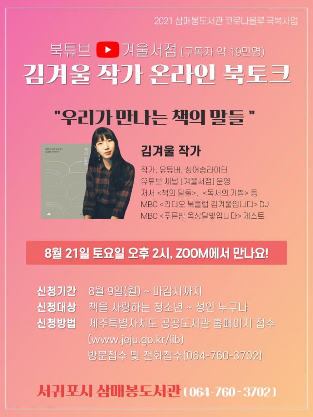 [Á¦ÁÖµµ¹Î½Å¹® = ³²Àç¿Á ±âÀÚ] ¼±ÍÆ÷½Ã »ï¸ÅºÀµµ¼°ü¿¡¼´Â ¼±ÍÆ÷½Ã¹ÎÀÇ Äڷγªºí·ç ±Øº¹À» À§ÇØ ¿À´Â 21ÀÏ Åä¿äÀÏ ¿ÀÈÄ 2½Ã¡®¿ì¸®°¡ ¸¸³ª´Â Ã¥ÀÇ ¸»µé¡¯À» ÁÖÁ¦·Î ±è°Ü¿ï ÀÛ°¡ ¿Â¶óÀÎ ºÏÅäÅ©¸¦ ÁøÇàÇÑ´Ù.