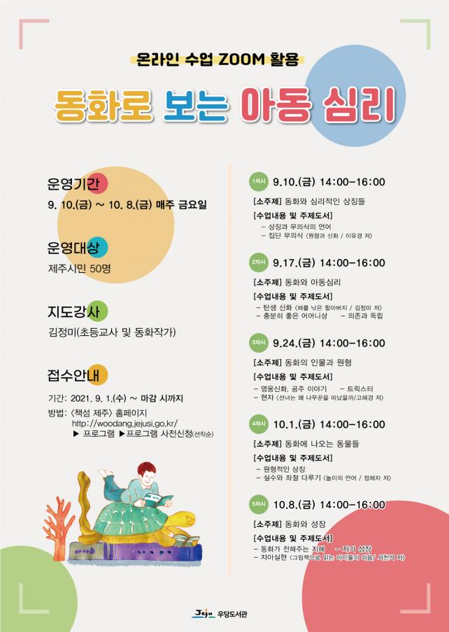 ÇÁ·Î±×·¥ ³»¿ëÀº ¡ã1°: µ¿È¿Í ½É¸®ÀûÀÎ »ó¡µé, ¡ã2°: µ¿È¿Í ¾Æµ¿½É¸®, ¡ã3°: µ¿ÈÀÇ Àι°°ú ¿øÇü, ¡ã4°: µ¿È¿¡ ³ª¿À´Â µ¿¹°µé, ¡ã5°: µ¿È¿Í ¼ºÀåÀ¸·Î, ÃÑ 5ȸ¿¡ °ÉÃÄ ¿î¿µµÉ ¿¹Á¤ÀÌ´Ù.