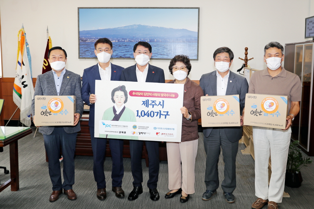 À̳¯ ¾Èµ¿¿ì Á¦ÁÖ½ÃÀåÀº ¡°Äڷγª19·Î ¸¹Àº ½Ã¹ÎµéÀÌ °æÁ¦ÀûÀ¸·Î Èûµç »óȲ¿¡¼ Ãß¼®¸ÂÀÌ ±è¸¸´ö »ç¶ûÀÇ ½Ò±¹¼ö ³ª´®À¸·Î ´Ù ÇÔ²² ÈÆÈÆÇÑ ¸íÀýÀ» ¸ÂÀ» ¼ö ÀÖÀ» °Í¡±À̶ó¸ç ÈÄ¿ø±â°ü µî¿¡ °í¸¶¿î ¸¶À½À» ÀüÇß´Ù.
