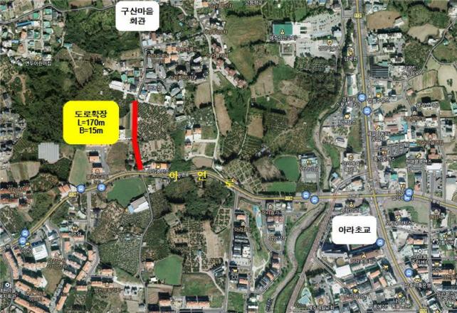 ÇØ´ç Áö¿ªÀº Àα٠Çб³ µî¡¤Çϱ³ ¹× Ã⡤Åð±Ù ½Ã°£ ¶§ Â÷·® ±³Â÷°¡ ¾î·Á¿ö µµ·Î È®Àå ¹Î¿øÀÌ Áö¼ÓÀûÀ¸·Î Á¦±âµÈ ±¸°£ÀÌ´Ù. ÀÌ¿¡ Á¦Áֽÿ¡¼´Â ÃÑ »ç¾÷ºñ 19¾ï¿ø(º¸»óºñ 15, °ø»çºñ 4)À» ÅõÀÔÇØ ¾Æ¿¬·Î¿¡¼ ±¸»ê¸¶À» ÁøÀÔ±¸°£(L=170m, B=15m)À» È®ÀåÇÏ´Â »ç¾÷À» ÃßÁøÇϱâ·Î Çß´Ù. À̹ø »ç¾÷Àº 2019³â ÅäÁöº¸»óÀ» ½ÃÀÛÀ¸·Î 2020³â¿¡ °ø»ç¸¦ Âø°øÇÏ¿© ¿ÃÇØ »ó¹Ý±â Áß ÁذøÇÒ °èȹÀ̾úÀ¸³ª, ÆíÀÔÅäÁö º¸»óÇùÀÇ Áö¿¬ µîÀ¸·Î ´çÃʺ¸´Ù °ø»çÁذø ½ÃÁ¡ÀÌ ´Ù¼Ò Áö¿¬µÇ¾ú´Ù.