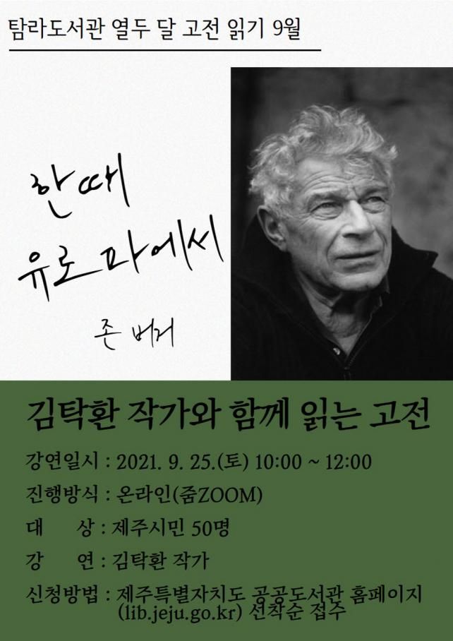 ¡®¿µÎ ´Þ °íÀü Àб⡯´Â ¸Å¿ù ÀÛ°¡°¡ ¼±Á¤ÇÑ ÇÑ ÆíÀÇ °íÀüÀ» ÇÔ²² ÀÐ°í °¿¬À» ÅëÇØ ´Ù¾çÇÑ ÇØ¼®À» °øÀ¯ÇÏ´Â ÇÁ·Î±×·¥À¸·Î, 9¿ù °íÀüÀº ±èŹȯ ÀÛ°¡°¡ ¼±Á¤ÇÑ Á¸ ¹ö°ÅÀÇ¡ºÇѶ§ À¯·ÎÆÄ¿¡¼¡»ÀÌ´Ù.