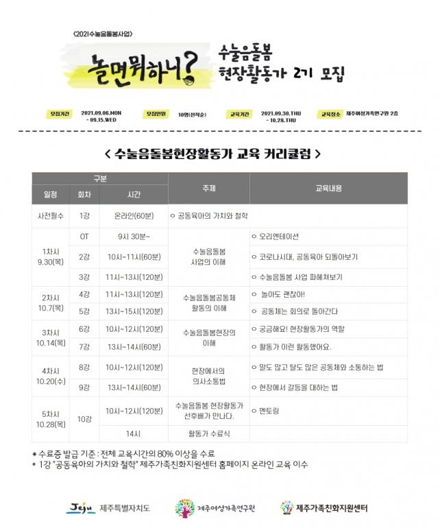 °øµ¿Ã¼ Ȱµ¿À» 2³â ÀÌ»ó Ç߰ųª »çȸº¹Áö½Ã¼³(º¸À°½Ã¼³) ±Ù¹«°æ·ÂÀÚÀ̸é ÀÌ ±³À°°úÁ¤¿¡ ½ÅûÇÒ ¼ö ÀÖ´Ù. º» ±³À°°úÁ¤À» ¼ö·áÇÑ È°µ¿°¡µéÀº 2022³â ¼ö´À½µ¹º½ ÇöÀå¿¡¼ ¼¾ÅÍÀÇ »ç¾÷À» ÅëÇØ ¹ß±¼µÉ µ¹º½°øµ¿Ã¼ Ȱµ¿À» µ½´Â ÄÁ¼³ÅÏÆ®·Î Ȱµ¿ÇÒ ¿¹Á¤ÀÌ´Ù.