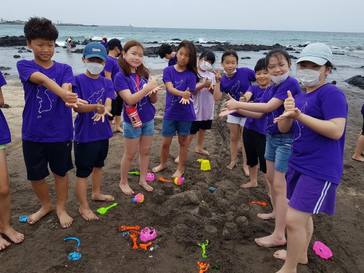 [Á¦ÁÖµµ¹Î½Å¹® = ¿ÀÁØÇõ ±âÀÚ] ½ÅÁ¦ÁÖÃʵîÇб³(±³Àå ±è¼±Èñ)´Â 4Çг⠴ë»óÀ¸·Î ¿î¿µÇÏ´Â »çÁ¦µ¿Çà ÅëÀϵ¿¾Æ¸® Çà»ç¸¦ 8¿ù 8ÀÏ(Åä¿äÀÏ 9½Ã~ 14:30ºÐ) ºÏÃÌ 1±æ ÀÏ´ë¿Í »ï¾çÇØ¼ö¿åÀå¿¡¼ ½Ç½ÃÇÏ¿´´Ù. À̹ø Çà»ç´Â ÅëÀÏÀÇ Àǹ̸¦ ÆòÈ¿Í ÇÔ²² »ý°¢ÇÏ°í ¹«´õ¿î ¿©¸§À» ±Øº¹Çϱâ À§ÇÏ¿© ¹°°ú ¸ð·¡°¡ ÀÖ´Â ½Ã¿øÇÑ ¹Ù´å°¡¸¦ ¼±ÅÃÇÏ¿´´Ù.