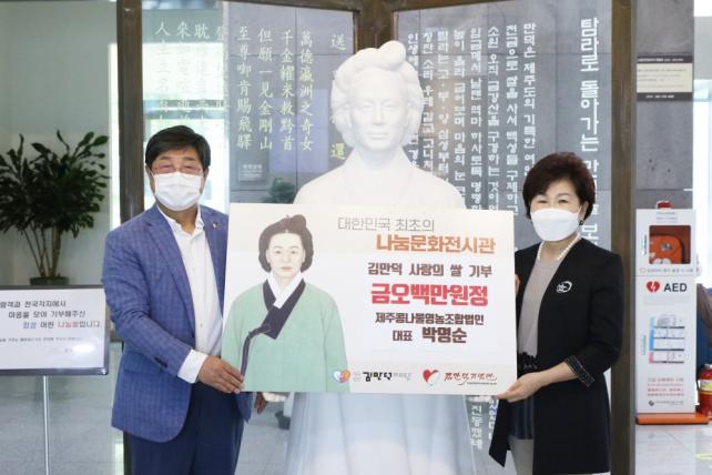 Á¦ÁÖÄᳪ¹°¿µ³óÁ¶ÇÕ¹ýÀÎ ¹Ú¸í¼ø´ëÇ¥, ±è¸¸´ö±â³ä°ü¿¡ »ç¶ûÀÇ ½Ò ¼º±Ý 500¸¸¿ø ±âŹ