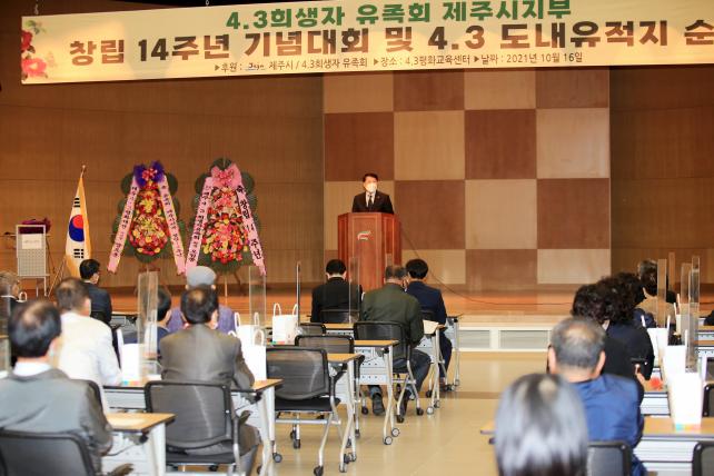 ¾Èµ¿¿ì Á¦ÁÖ½ÃÀåÀº ±×µ¿¾È 4¡¤3ÀÇ Áø»ó±Ô¸íÀ» À§ÇØ ³ë·ÂÇØ ¿À½Å À¯Á·È¸¿øµé¿¡°Ô ¡°21³â ¸¸¿¡ 4¡¤3Ưº°¹ýÀÌ ÀüºÎ°³Á¤µÇ¾î Èñ»ýÀÚ¿Í À¯Á·ÀÇ ¸í¿¹ ȸº¹À» À§ÇÑ ±¸Ã¼ÀûÀÎ ¹æ¾ÈÀÌ Á¦½ÃµÈ ¸¸Å, Á¦ÁÖ4¡¤3À¯Á·È¸¿Í ÇÔ²² 4¡¤3ÀÇ Áø½Ç ±Ô¸íÀ» À§ÇØ ³ë·ÂÇϰڴ١±°í ¸»Çß´Ù. ÀÌ¾î ¡°Á¦ÁÖ½Ã¿Í Á¦ÁÖ4¡¤3ÆòÈÀç´Ü, °æ±â¾ÆÆ®¼¾ÅÍ 3°³ ±â°üÀÌ °øµ¿±âȹ Á¦ÀÛÇÑ Ã¢ÀÛ¿ÀÆä¶ó ¼øÀÌ»ïÃá °ø¿¬À» ¿À´Â 12¿ù 30ÀÏ¿¡ °æ±âµµ ¾ÆÆ®¼¾ÅÍ¿¡¼ °³ÃÖÇÑ´Ù¡±¸ç ¡°4¡¤3À» Àü±¹È, ¼¼°èÈÇÏ´Â µ¥ Á¦Áֽð¡ Àû±Ø ¾ÕÀå¼°Ú´Ù¡±°í °Á¶Çß´Ù.