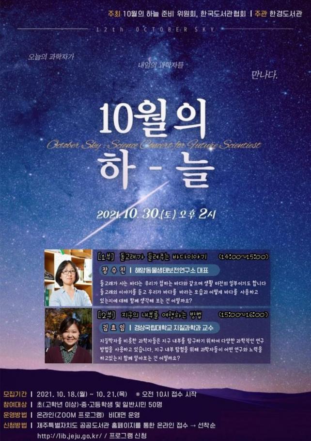 Çѱ¹µµ¼°üÇùȸ¿Í 10¿ùÀÇ ÇÏ´Ã ÁغñÀ§¿øÈ¸ÀÇ °øµ¿ÁÖÃÖ·Î ¿î¿µµÇ´Â <10¿ùÀÇ ÇÏ´Ã>Àº ¿ÃÇØ·Î ¿µÎ ¹øÂ°¸¦ ¸ÂÀÌÇßÀ¸¸ç, °úÇÐÀÚ, °øÇÐÀÚ, ±â¼úÀÚ µî ´Ù¾çÇÑ ºÐ¾ß Àü¹®°¡µéÀÇ Àç´É±âºÎ·Î ¸Å³â 10¿ù 30ÀÏ ¿ÀÈÄ 2½Ã¿¡ Âü¿© µµ¼°ü(¿ÃÇØ 50°³°ü)ÀÌ µ¿½Ã¿¡ °úÇÐ °¿¬À» ÁøÇàÇÑ´Ù. ƯÈ÷ Á¦ÁÖ µµ³» °ø°øµµ¼°ü¿¡¼´Â ÇѰ浵¼°üÀÌ À¯ÀÏÇÏ°Ô ¼±Á¤µÆ´Ù.