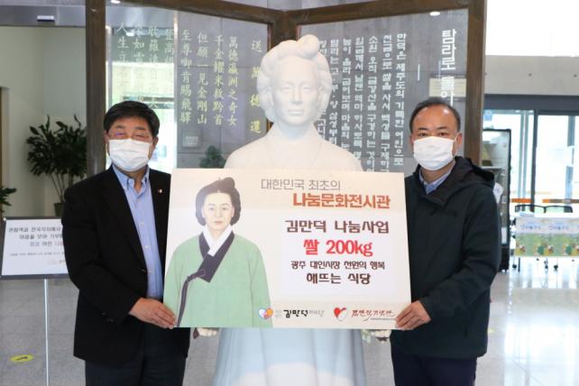±è¸¸´ö±â³ä°ü ±è»óÈÆ °üÀåÀº ¡°¾î·Á¿î ÀÌ¿ôÀ» À§ÇØ µû¶æÇÑ ¹ä Çѳ¢¸¦ ³ª´©´Â °ÍÀÌ ¹Ù·Î ±è¸¸´öÀÇ Á¤½ÅÀÌ´Ù¡±¸ç ¡°¾î¸Ó´Ï¿Í ±èÀ±°æ¾¾ÀÇ ¶æÀÌ °è¼Ó À̾îÁú ¼ö ÀÖµµ·Ï ¸Å³â Áö¼ÓÀûÀ¸·Î ±è¸¸´ö »ç¶ûÀÇ ½ÒÀ» Áö¿øÇϰڴ١±°í ¹àÇû´Ù.