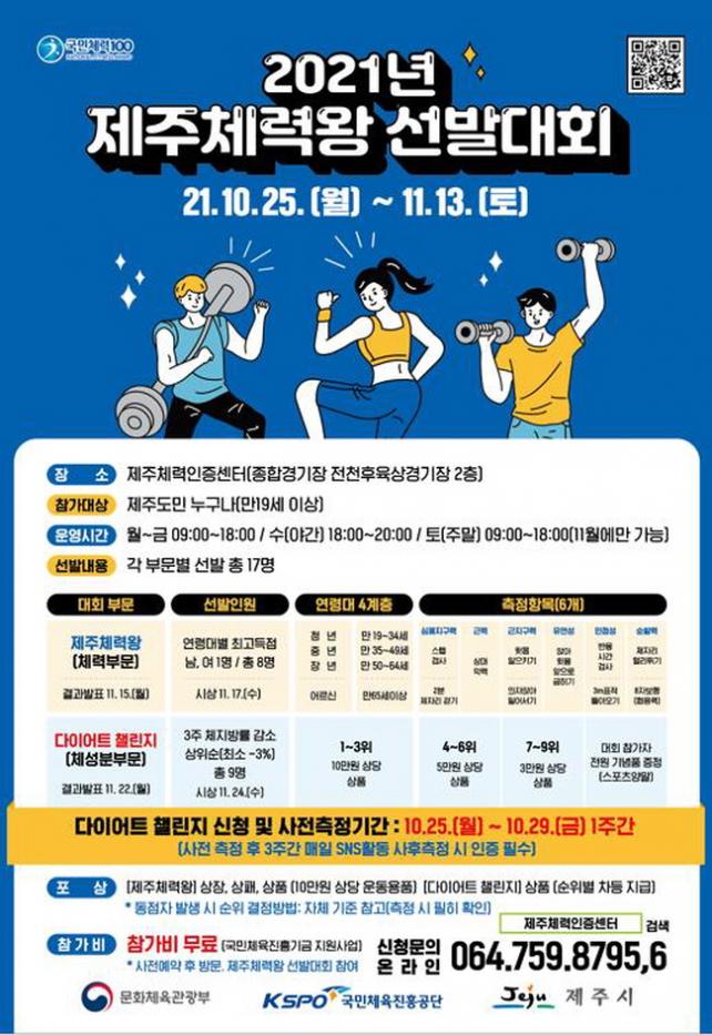 À̹ø Á¦ÁÖü·Â¿Õ ¼±¹ß´ëȸ´Â ¿îµ¿ÀÇ Çʿ伺 ü°¨°ú ü·Â¼öÁØ Çâ»óÀÇ ¼ºÃë°¨ °íÃë µîÀ» ÅëÇØ ½Ã¹ÎµéÀÇ Ã¼·ÂÁõÁø µµ¸ð¸¦ ¸ñÀûÀ¸·Î ÇÑ´Ù.