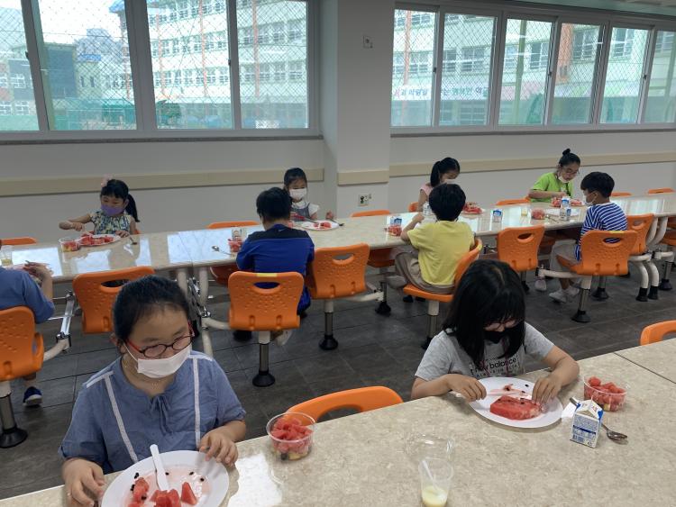 [Á¦ÁÖµµ¹Î½Å¹® = ¿ÀÁØÇõ ±âÀÚ] Á¦ÁÖ³²ÃʵîÇб³(±³Àå ±èÁø¼±) 2Çг⿡¼­´Â 2020. 8. 12.(¼ö)¿¡ ¿©¸§ÃàÁ¦ µÎ¹øÂ° Çà»ç·Î "¿©¸§ °úÀϷΠȭä ¸¸µé±â"¸¦ ½Ç½ÃÇÏ¿´´Ù. ¼ö¹Ú, ºí·çº£¸® µî ¿©¸§ °úÀÏÀ» °üÂûÀ» ½ÃÀÛÀ¸·Î °¢Á¾ °úÀϵéÀ» ´Ù¾çÇÑ ¸ð¾çÀ¸·Î ½ä¾î Àç·á¸¦ ÁغñÇÑ ÈÄ ¿ìÀ¯¸¦ ³Ö¾î ¿©¸§À» ½Ã¿øÇÏ°í °Ç°­ÇÏ°Ô ÇØ ÁÙ ¸ÀÀִ ȭ並 ¸¸µé¾ú´Ù. ÀÌ °úÁ¤À» ÅëÇØ ¿©¸§ °úÀÏÀ» ´õ ÀÚ¼¼È÷ °üÂûÇÏ°í ¹«´õ¿î ´õÀ§¸¦ À̰ܳ¾ ¼ö ÀÖ´Â ½½±â·Î¿î °£½Ä ¸¸µå´Â ¹æ¹ýÀ» ¾Ë¾Æº¸´Â Áñ°Ì°í º¸¶÷ ÀÖ´Â ½Ã°£À» °¡Á³´Ù. ¿©¸§ ÃàÁ¦ ¸¶Áö¸·ÀÌ µÉ ³»ÀÏÀÇ Çà»ç´Â ¹«¾ùÀÏÁö 2Çгâ Ä£±¸µé ¸ðµÎ ºÎǬ ±â´ë¸¦ °¡Áö°í ¿À´Ã Çà»ç¸¦ ¸¶¹«¸® ÇÏ¿´´Ù.