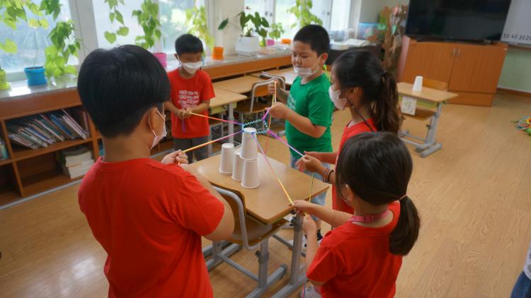 1~2Çгâ ÇлýµéÀÌ Âü¿©ÇÑ ¡®¸¶À½¿±â ³îÀÌÅÍ¡¯¿¡´Â ¿©·¯ °¡Áö ³îÀÌ·Î ¼·Î ÀλçÇÏ°í ¸¶À½À» ¿©´Â ½Ã°£À» °¡Á³°í, 3~6ÇгâÀÌ Âü¿©ÇÑ ¡®¸¸µé±â üÇè ³îÀÌÅÍ¡¯¿¡´Â °¢ÀÚ ¸ÃÀº ºÎºÐÀÇ Á¶°¢ ±×¸²¿¡ »öÀ» Ä¥ÇÏ°í ±× Á¶°¢µéÀ» ÀÌ¾î ¹«´ë¹è°æ Å©±âÀÇ °Å´ëÇÑ ±×¸²À¸·Î ¿Ï¼ºÇÏ¿´´Ù.