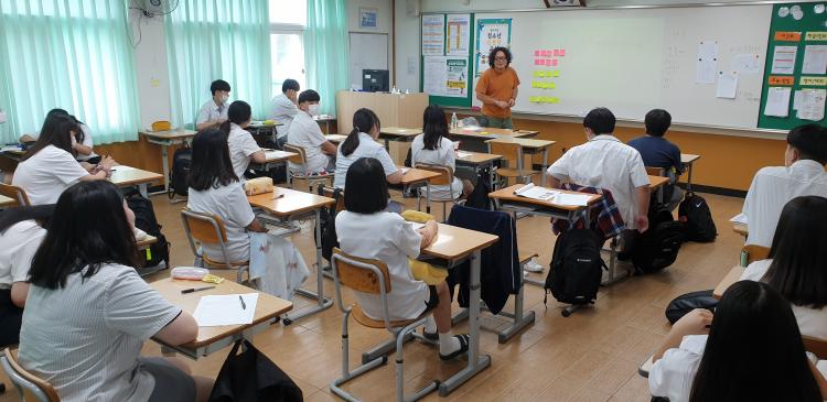 [Á¦ÁÖµµ¹Î½Å¹® = ¿ÀÁØÇõ ±âÀÚ] ÇѸ²°íµîÇб³(±³Àå ¼ÛÀçÃæ)¿¡¼­´Â 8¿ù 12ÀÏ(¼ö)¿¡ 1Çгâ Àü±³»ýÀ» ´ë»óÀ¸·Î 2~3±³½Ã¿¡ °ÉÃÄ ¡®´º¸ð·²½Ã´ë, °ø°¨À» ã´Ù!¡¯¶ó´Â ÁÖÁ¦·Î ¡®Ã£¾Æ°¡´Â û¼Ò³â Àι®ÇÐ ±³½Ç¡¯À» ¿î¿µÇÏ¿´´Ù. ÀÌ ÇÁ·Î±×·¥Àº Äڷγª19·Î ÀÎÇØ ¿Â¶óÀÎ ¼ö¾÷ÀÌ ÁøÇàµÇ¸é¼­ Çлýµé¿¡°Ô ±³°ú Áö½Ä À̿ܿ¡ Àμº°ú Àι®ÇÐÀû ¼Ò¾çÀ» ±â¸¦ ¼ö ÀÖ´Â ±âȸ¸¦ ´Ù¾çÇÏ°Ô Á¦°øÇØÁÖÁö ¸øÇÏ´Â °ÍÀ» ¾ÈŸ±õ°Ô »ý°¢ÇÏ´ø 1Çг⠴ãÀÓ±³»çµéÀÇ ³ë·ÂÀ¸·Î ¸¶·ÃµÇ¾ú´Ù. Çлýµé¿¡°Ô ´Ù¾çÇÑ °æÇèÀ» ÁÖ°íÀÚ ¿©·¯ ¹æ¾ÈÀ» ¸ð»öÇÏ´ø Áß Á¦ÁÖ¹®ÇÐÀÇÁý¿¡¼­ ÈÄ¿øÇϴ¡®Ã£¾Æ°¡´Â û¼Ò³â Àι®ÇÐ ±³½Ç¡¯À» ÁøÇàÇÏ´Â °ÍÀ» ¾Ë°Ô µÇ¾ú°í 1Çб⠲޳¢Å½»öÁÖ°£°ú ¿¬°èÇÏ¿© ªÀº µî±³ ¼ö¾÷ ±â°£ µ¿¾È ±³°ú °øºÎ·Î °í»ýÇÑ Çлýµé¿¡°Ô »çȸ¿Í »î¿¡ ´ëÇÑ °í¹ÎÀ» ÇÒ ¼ö ÀÖ´Â ½Ã°£À» ÁÖ°íÀÚ ±âȹµÇ¾ú´Ù. ¹®Çаú Á¦ÁÖ ¿ª»ç, Á¦ÁÖ½ÅÈ­, ¿µÈ­ ¼Ó Àι®ÇÐ, ¹®ÇÐÇб³¿¡¼­ ³ª¸¦ ã´Â Àι®ÇÐ, BTS¿¡°Ô ¹è¿ì´Â öÇÐ µîÀÇ °­ÀǸ¦ Á¦ÁÖ¹®ÇÐÀÇÁýÀÇ ÈÄ¿øÀ» ¹Þ¾Æ ÁøÇàÇÏ¿´À¸¸ç, ÀÌ¿Í ´õºÒ¾î ¿¹¼ú°ú ¿ª»ç, ½Ã°¢¿¹¼úÀ» ÁÖÁ¦·Î ÇÑ °­ÀǸ¦ Ãß°¡ÀûÀ¸·Î ÁøÇàÇÔÀ¸·Î½á ´Ù¾çÇÑ Àι®ÇÐÀû ÁÖÁ¦¸¦ ÅëÇØ ÇлýµéÀÇ »ó»ó·Â°ú âÀÇ·ÂÀ» ÀÚ±ØÇÒ ¼ö ÀÖ´Â °­ÀǸ¦ ½Ç½ÃÇÏ¿´´Ù. ÀÌ ÇÁ·Î±×·¥À» ÅëÇØ 1Çгâ ÇлýµéÀÌ Àι®ÇÐÀû ¼Ò¾çÀ» ±â¸£°í ÀÚ½ÅÀÇ »îÀ» µÇµ¹¾Æº½À¸·Î½á º¸´Ù ³ªÀº »îÀÇ ÀÚ¼¼·Î ÀÚ½ÅÀÇ ¹Ì·¡¸¦ ÇâÇØ ³ª¾Æ°¥ ¼ö Àֱ⸦ ¹Ù¶õ´Ù.