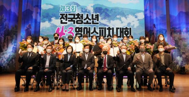 4‧3ÆòÈÀç´Ü°ú Çѱ¹À¯³×½ºÄÚÁ¦ÁÖÇùȸ(ȸÀå À̼±È)°¡ °øµ¿ÁÖ°üÇϰí, ±³À°ºÎ¿Í Á¦ÁÖÆ¯º°ÀÚÄ¡µµ, Á¦ÁÖÆ¯º°ÀÚÄ¡µµ±³À°Ã»ÀÌ ÈÄ¿øÇß´Ù. ´ëȸ Âü°¡ ÇлýµéÀº 4¡¤3ÀÇ ¿ª»çÀû Áø½Ç°ú ÆòÈ¿Í ÀαÇ, ÈÇØ¿Í »ó»ýÀÇ ±³ÈÆÀû Àǹ̸¦ °³ÀÎÀÇ Ã¼Çè°ú ÀÏ»ó ¼Ó¿¡¼ ã¾Æ³¿°ú µ¿½Ã¿¡ Àü ¼¼°è¿¡ 4¡¤3À» ¾Ë¸± ¼ö ÀÖ´Â ´Ù¾çÇÑ ¹æ¹ý°ú »ý°¢À» Ç®¾î³Â´Ù.