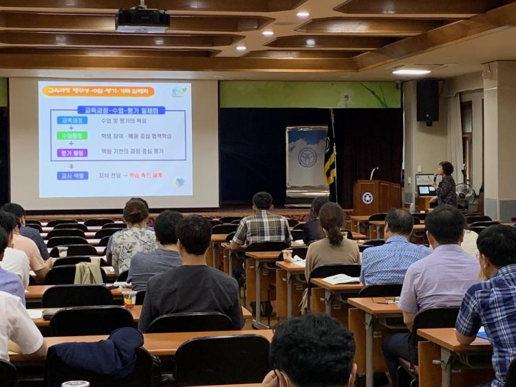 [Á¦ÁÖµµ¹Î½Å¹® = ¿À½ÂÅà ±âÀÚ] Á¦ÁÖÆ¯º°ÀÚÄ¡µµ±³À°Ã»(±³À°°¨ À̼®¹®)Àº 8¿ù 13ÀÏ(¸ñ) µµ±³À°Ã» ´ëȸÀǽǿ¡¼­ µµ³» °íµîÇб³ ±³¿ø 60¿© ¸íÀ» ´ë»óÀ¸·Î °íµîÇб³ ±³À°°úÁ¤ ¹®ÇØ·Â ¿¬¼ö¸¦ ½Ç½ÃÇß´Ù. À̹ø ¿¬¼ö´Â ±³À°°úÁ¤ À籸¼ºÀ» ÅëÇÑ ±³°ú °£ ÁÖÁ¦ ÅëÇÕ ¼ö¾÷ È®»êÀ» À§ÇÑ ±³¿ø ¿ª·®°­È­ Â÷¿ø¿¡¼­ ¸¶·ÃµÇ¾ú´Ù. 2015 °³Á¤ ±³À°°úÁ¤¿¡¼­´Â ÁÖÁ¦ Áß½ÉÀÇ ÇÁ·ÎÁ§Æ® ¼ö¾÷, À¶ÇÕ ¼ö¾÷ µî ±³°ú ¿¬°èÀÇ ´Ù¾çÇÑ È°µ¿À» È®´ëÇϱâ À§ÇÑ Çб³ ÀÚÀ²Àû ±³À°°úÁ¤À» ¿î¿µÇÒ ¼ö ÀÖ´Ù. ¶ÇÇÑ, ¿¬¼ö¿¡¼­´Â ¡â±³¿øÀÇ ±³À°°úÁ¤ ¹®ÇØ·Â Çâ»óÀ» ÅëÇÑ ±³À°°úÁ¤ À籸¼º ¹æ¹ý ¡â±³°ú °£ ÁÖÁ¦ÅëÇÕ ¼ö¾÷ ¿î¿µ ¸ðµ¨ ¡âÇлýÀÇ ¼ºÀå°ú ¹ßÀüÀ» À§ÇÑ ±³À°°úÁ¤-¼ö¾÷-Æò°¡-±â·ÏÀÇ ÀÏüȭ ¹æ¾ÈÀ» °¢ Çб³¿¡ Àû¿ëÇÏ´Â ¹æ¹ýÀ» ¸ð»öÇÏ´Â ½Ã°£À» °¡Á³´Ù. µµ±³À°Ã» °ü°èÀÚ´Â ¡°¿ÃÇØºÎÅÍ 2015 °³Á¤ ±³À°°úÁ¤ÀÌ ¸ðµç Çб³±Þ, Àüü Çг⿡ Àû¿ëµÇ´Â ¸¸Å­ ¸ðµç ±³»ç°¡ ±³À°°úÁ¤ Àü¹®°¡·Î¼­ ¹Ì·¡»çȸ°¡ ¿ä±¸ÇÏ´Â Çٽɿª·®À» °®Ãá ÀÎÀç ¾ç¼º¿¡ ³ë·ÂÀ» ±â¿ïÀ̰í ÀÖÀ¸¸ç, ±³À°Ã»¿¡¼­µµ Çб³ÇöÀå Áö¿ø¿¡ ÃÖ¼±À» ´ÙÇϰڴ١±°í ¸»Çß´Ù.