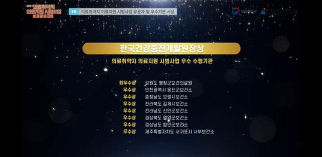 Àü±¹ º¸°Ç¼Ò Áß ½Ã¹ü»ç¾÷ ¿î¿µ±â°ü ¿ø°ÝÁö 164°³¼Ò¸¦ ´ë»óÀ¸·Î º¸°Ç±â°üÀÇ ¿¬°£ »ç¾÷ ¿î¿µ ¼º°ú¸¦ Æò°¡ÇÏ¿© ¼±ÍÆ÷½Ã ¼ºÎº¸°Ç¼Ò°¡ ¿ì¼ö±â°üÀ¸·Î ¼±Á¤µÇ¾ú´Ù.