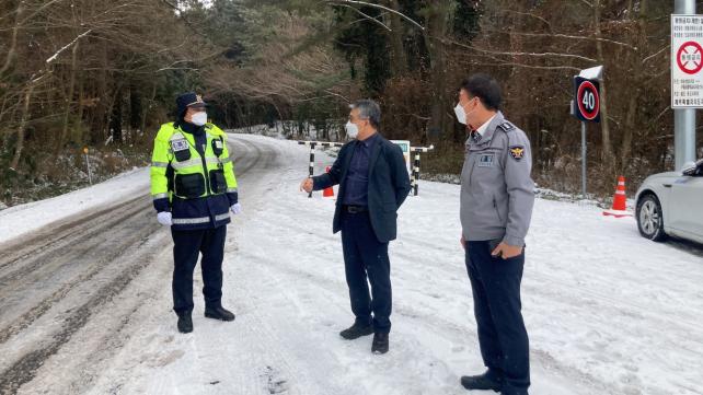 °í ûÀåÀº 1100µµ·Î ¾î½Â»ý»ï°Å¸® ÅëÁ¦¼Ò¿¡¼ ¿µÇÏÀÇ ³¯¾¾¿¡ Àå½Ã°£ °í»ýÇÏ´Â ±³Åë°æÂû°üµéÀ» °Ý·ÁÇÏ¸ç ¡°µµ¹Î°ú °ü±¤°´ÀÇ ¾ÈÀüÀ» ÃÖ¿ì¼±À¸·Î ÇÏ¿© ÅëÁ¦¸¦ ÀßÇϵÇ, ÇѶó»êÀ» ã´Â Ž¹æ°´µéÀÌ Á¦ÁÖÀÇ ÀÚ¿¬À» ¸¸³£ÇÒ ¼ö ÀÖµµ·Ï °ü°è ±â°ü°ú Çù¾÷ÇÏ¿© Ãִܽ𣠳»¿¡ µµ·Î°¡ Á¤»ó鵃 ¼ö ÀÖµµ·Ï ³ë·ÂÇØ ´Þ¶ó¡±°í ´çºÎÇÏ¿´´Ù.