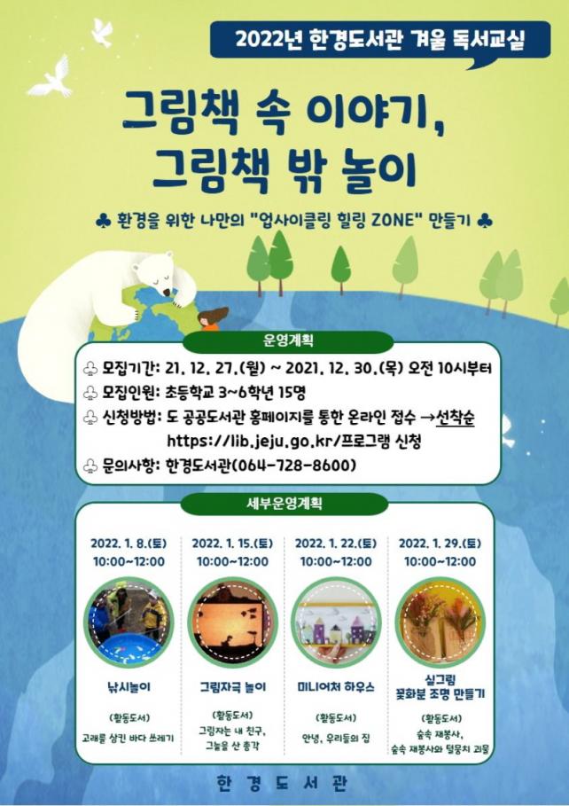 À̹ø °Ü¿ïµ¶¼±³½ÇÀº ¡®È¯°æ¡¯À̶ó´Â »çȸÀû À̽´¿¡ ´ëÇØ ¾î¸°ÀÌ ´«³ôÀÌ¿¡ ¸Â´Â ±×¸²Ã¥ Àбâ¿Í Æóǰ µîÀ» Ȱ¿ëÇÑ ¸¸µé±â üÇè Ȱµ¿À» ¿î¿µÇØ Âü¿© ¾î¸°À̵鿡°Ô ÀÔüÀûÀΠȯ°æ±³À°À» Á¦°øÇÒ ¿¹Á¤ÀÌ´Ù.