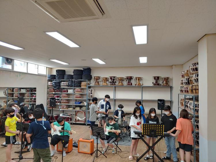 [Á¦ÁÖµµ¹Î½Å¹® = ¿ÀÁØÇõ ±âÀÚ] ÇÑõÃʵîÇб³(±³Àå ±èâÈñ) ¹®È­¿¹¼úµ¿¾Æ¸® ¹êµåºÎ°¡ Áö³­ 8¿ù 18ÀÏ(È­)ºÎÅÍ 8¿ù 21(±Ý)±îÁö ¡®¿©¸§Ä·ÇÁ¡¯·Î ¾Ç±âº° ÁýÁß Áöµµ¸¦ ÅëÇØ °³Àκ° ¿¬ÁÖ ´É·Â ¹× ÇÕÁÖ ´É·Â Çâ»óÀÇ ½Ã°£À» °¡Á³´Ù. ¹êµåºÎ ¿©¸§ Ä·ÇÁ´Â 5,6Çгâ Çлýµé¿¡°Ô Å« È£ÀÀÀ» ¾ò°í ÀÖ¾î, Æø¿° ¼Ó¿¡¼­µµ 16¸í ¸ðµÎ ´Ü ÇÑ ¸íÀÇ ³«¿ÀÀÚµµ ¾øÀÌ ¿î¿µ, 8¿ù 21ÀÏ ¸¶Áö¸· ³¯¿¡´Â ¾Æ½±´Ù´Â ¹ÝÀÀ±îÁö º¸¿´´Ù. À̹ø ¹êµåºÎ ¿©¸§Ä·ÇÁ´Â Çлýµé¿¡°Ô ÀÚ½ÅÀÇ ÀáÀç ´É·ÂÀ» ãÀ¸¸ç ÃÖ¼±À» ´ÙÇØ ²Þ°ú ³¢¸¦ ã¾Æ°¡´Â ¼ÒÁßÇÑ ½Ã°£À̾ú°í, Ä£±¸µé°ú ÇÔ²² È­À½À» ÀÌ·ç¸é¼­ Çù·ÂÀÇ ¼ÒÁßÇÔµµ ´À²¸º¸°í, ¹®È­ ¿¹¼úÀ» Áñ±â°í ÇâÀ¯Çϴ ŵµ¸¦ ¹è¿ï ¼ö ÀÖ´Â ¼ÒÁßÇÑ ½Ã°£À̾ú´Ù.