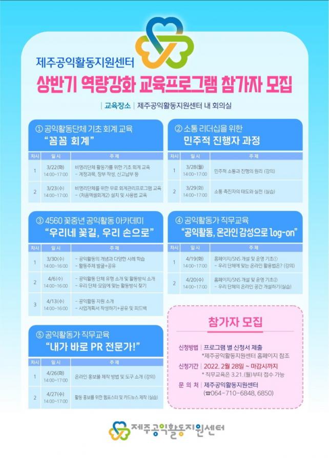 ÁÖ¿ä ±³À°ÇÁ·Î±×·¥Àº ¡â±âÃÊ È¸°è¸¦ ÁÖÁ¦·Î ÇÑ ºñ¿µ¸®´Üü ½Ç¹«±³À° ¡â´ÜüÀ塤Áß°£°ü¸®ÀÚ¸¦ ´ë»óÀ¸·Î ÇÏ´Â ¹ÎÁÖÀû ÁøÇàÀÚ °úÁ¤(ÆÛ½Ç¸®Å×ÀÌ¼Ç ±³À°) ¡â°øÀÍȰµ¿¿¡ °ü½É ÀÖ´Â Á߳⼼´ë Ȱµ¿°¡ À°¼ºÀ» À§ÇÑ ¾ÆÄ«µ¥¹Ì ¡âȨÆäÀÌÁö¡¤¿Â¶óÀÎ È«º¸¹° Á¦ÀÛ µî °øÀÍȰµ¿°¡ Á÷¹«Çâ»óÀ» À§ÇÑ ±³À°ÇÁ·Î±×·¥ µîÀÌ´Ù.