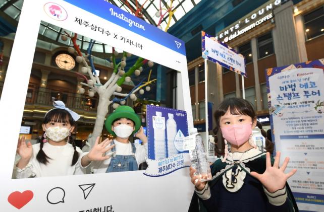 Á¦ÁÖ»ï´Ù¼ö¸¦ »ý»ê, ÆÇ¸ÅÇϰí ÀÖ´Â Á¦ÁÖÆ¯º°ÀÚÄ¡µµ°³¹ß°ø»ç(»çÀå ±èÁ¤ÇÐ)´Â ¿À´Â 31ÀϱîÁö ¼¿ï°ú ºÎ»ê¿¡ À§Ä¡ÇÑ ¾î¸°ÀÌ Á÷¾÷üÇè Å׸¶ÆÄÅ© ŰÀÚ´Ï¾Æ ³» »ï´Ù¼ö üÇè°ü ¹æ¹®°´À» ´ë»óÀ¸·Î ģȯ°æ Àç»ý¿ø·á(CR-PET)·Î ¸¸µç Á¦ÁÖ»ï´Ù¼ö ÁõÁ¤ºÎÅÍ ¹° Àý¾àÀ» ¹è¿öº¸´Â ¡®ECO Ä·ÆäÀΡ¯±îÁö ´Ù¾çÇÑ Çà»ç¸¦ ¸¶·ÃÇß´Ù.