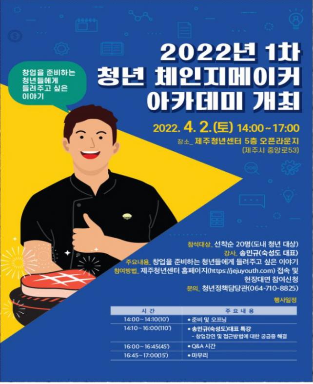 À̹ø ¾ÆÄ«µ¥¹Ì´Â ¡¸Á¦ÁÖ ¼÷¼ºµµ¡¹ ¼Û¹Î±Ô ´ëÇ¥°¡ °¿¬ÀÚ·Î ³ª¼ ÇöÀå¿¡¼ Á÷Á¢ °æÇèÇϸç ÃàÀûÇÑ Ã¢¾÷ ³ëÇϿ츦 û³âµé°ú °øÀ¯Çϰí, ±Ã±ÝÇÑ Á¡À» Á÷Á¢ ¹¯°í ´äÇÏ´Â ¹æ½ÄÀ¸·Î ÁøÇàµÈ´Ù. Äڷγª19 È®»ê ¹æÁö¸¦ À§ÇØ ÇöÀå °¿¬ Âü¼®ÀÚ 20¸íÀ» ¼±Âø¼ø ¸ðÁýÇÑ´Ù. °¿¬¿¡ Á÷Á¢ Âü°¡ÇÏ°í ½ÍÀº û³âÀº 4¿ù 1ÀϱîÁö Á¦ÁÖû³â¼¾ÅÍ È¨ÆäÀÌÁö(https://jejuyouth.com)¸¦ ÅëÇØ ½ÅûÇÒ ¼ö ÀÖ´Ù.