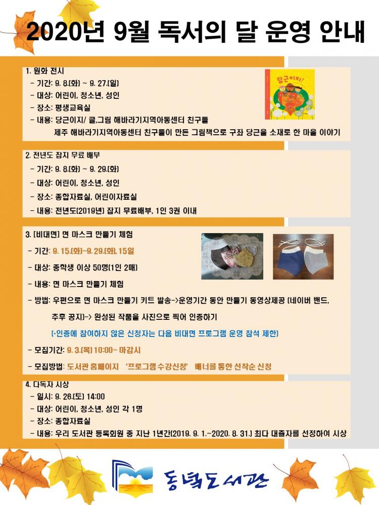 µ¿³èµµ¼­°ü, 9¿ù µ¶¼­ÀÇ ´Þ ¿î¿µ ¾È³»