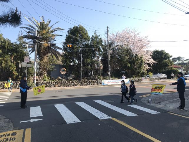 [Á¦ÁÖµµ¹Î½Å¹® = ³²Àç¿Á ±âÀÚ] ¼±ÍÆ÷½Ã µ¿È«µ¿ÁÖ¹ÎÀÚÄ¡À§¿øÈ¸(À§¿øÀå ¾ç¼º¿ì)´Â Áö³ 4ÀÏ µ¿È«ÃʵîÇб³ ¾Õ °Ç³Î¸ñ¿¡¼ ¾î¸°À̵éÀÇ ¾ÈÀüÇÑ µî±³¸¦ À§ÇÑ ±³Åë¾ÈÀü Ä·ÆäÀÎÀ» Àü°³ÇÏ¿´´Ù.