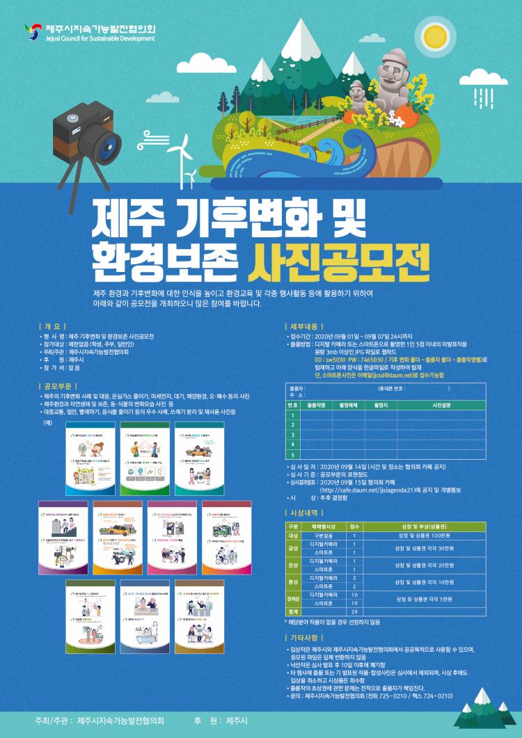 ÃâǰÀÛǰÀº °øÁ¤ÇÑ ½É»ç¸¦ °ÅÃÄ ÃÑ 29Á¡À» ¼±Á¤ÇØ 9¿ù ÁßÀ¸·Î ¼ö»óÀÛÀ» ¹ßÇ¥Çϰí, ÃÑ 340¸¸¿øÀÇ »ó±ÝÀ» Áö±ÞÇÒ °èȹÀÌ´Ù. ÀÀ¸ð¹æ¹ýÀº µðÁöÅÐÄ«¸Þ¶ó ¶Ç´Â ½º¸¶Æ®ÆùÀ¸·Î ÃÔ¿µÇÑ 1ÀÎ 5Á¡ À̳»ÀÇ ÀÛǰ(3MB ÀÌ»ó jpgÆÄÀÏ)À» Âü°¡½Åû¼¿Í ÇÔ²² À¥Çϵå(http://www.webhard.co.kr)¿¡ žÀçÇÏ¸é µÇ¸ç, ½º¸¶Æ®Æù»çÁøÀº À̸ÞÀÏ(jjcsd@daum.net)·Î Á¢¼ö°¡´É ÇÏ´Ù. ±âŸ ÀÚ¼¼ÇÑ ¹®ÀÇ»çÇ×Àº Á¦ÁÖ½ÃÁö¼Ó°¡´É¹ßÀüÇùÀÇȸ(¢Ï725-0210) ¶Ç´Â ȯ°æ°ü¸®°ú(¢Ï728-2193)·Î ¿¬¶ôÇÏ¿© È®ÀÎÇÒ ¼ö ÀÖ´Ù.