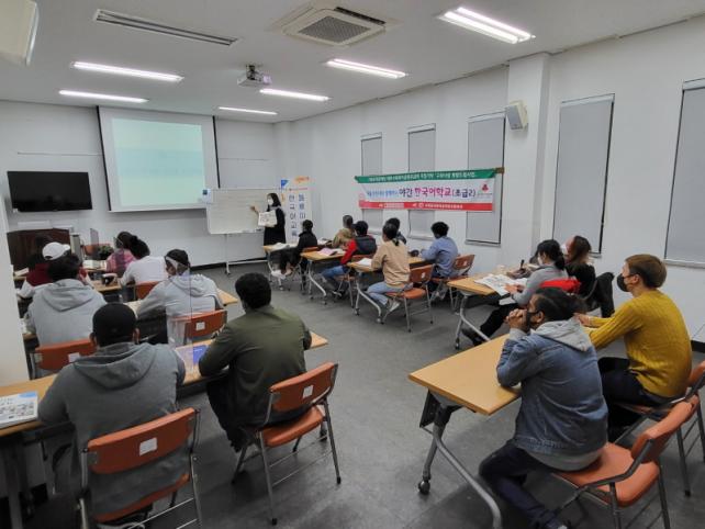 À̹ø ¼ö¾÷Àº Á÷ÀåÀÏ·Î ÇнÀ ±âȸ°¡ ÀûÀº Á¦Áֽà ±¸ÁÂÀ¾ °áÈ¥ ÀÌÁÖ¿©¼º°ú ¿Ü±¹ÀÎ ±Ù·ÎÀÚ¸¦ ´ë»óÀ¸·Î ¡®Çѱ¹¾î¿Í Çѱ¹¹®È ÃʱÞ2¡¯°úÁ¤ÀÎ ¹®¹ý°ú ¾îÈÖ, »ýȰ¾ð¾î¸¦ Áß½ÉÀ¸·Î ÇнÀ ´É·Â Çâ»ó µîÀ» À§ÇØ ¸¶·ÃµÇ¾ú´Ù.