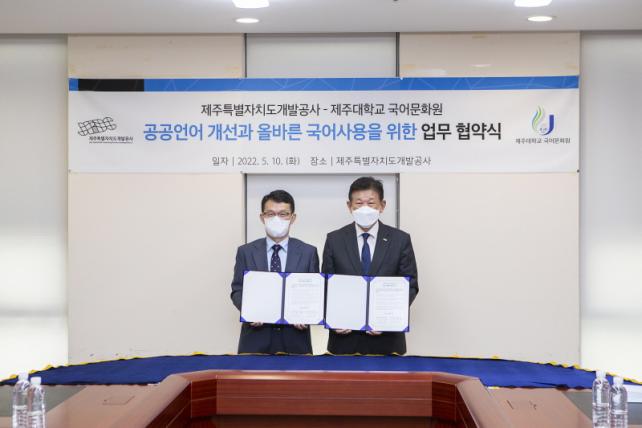 ÇÑÆí, Á¦ÁÖ°³¹ß°ø»ç ±èÁ¤ÇÐ »çÀåÀº ¡° Á¦ÁÖ´ëÇб³ ±¹¾î¹®È¿ø°úÀÇ ±ä¹ÐÇÑ ±³·ù¸¦ ÅëÇØ °ø»ç ÀÓÁ÷¿øµéÀÇ ºÒÇÊ¿äÇÑ ¿Ü·¡¾î¿Í ¿ë¾î¸¦ ¼øÈÇØ ±¹¹Î°ú ¿øÈ°ÇÑ ÀÇ»ç¼ÒÅëÀ» ÇØ³ª °¥ °ÍÀ̶ó¸ç, °ø»ç ÀÓÁ÷¿øµéÀÇ ¿Ã¹Ù¸¥ °ø°ø¾ð¾î »ç¿ë°ú Á¦Á־ °è½Â¿¡ ´ëÇÑ ±³À° ¹× Çà»çµµ ÃßÁøÇϰڴÙ.¡±°í ¹àÇû´Ù.
