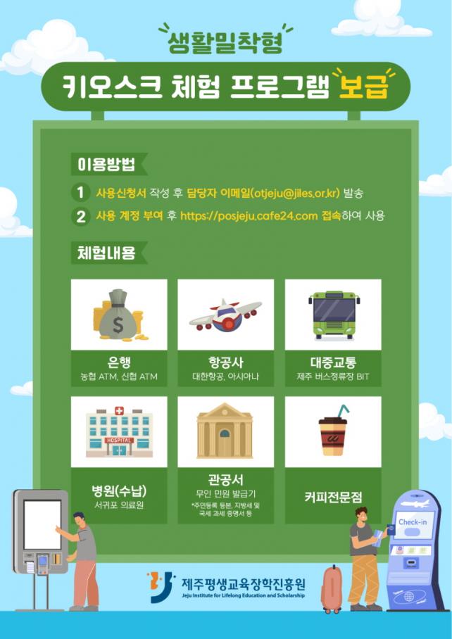 [»ýȰ¹ÐÂøÇü Ű¿À½ºÅ© °¡»óüÇè ÇÁ·Î±×·¥]Àº 2021³â ±³À°ºÎ¿¡¼ ÁÖ°üÇÏ´Â ¼ºÀι®Çر³À° °ø¸ð »ç¾÷ÀÇ ÀÏȯÀ¸·Î °³¹ßµÇ¾úÀ¸¸ç, Á¦ÁÖ Áö¿ª ȯ°æ¿¡ ¸Â´Â ÀºÇà, Ç×°ø, ´ëÁß±³Åë µî 8Á¾ÀÇ Å°¿À½ºÅ© üÇè ¸ðµ¨ÀÌ ±¸ÃàµÇ¾ú´Ù.