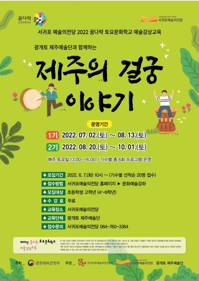 º» ±³À°Àº Çѱ¹¹®È¿¹¼úȸ°ü¿¬ÇÕȸ °ø¸ð»ç¾÷¿¡ ¼±Á¤µÈ ÇÁ·Î±×·¥À¸·Î ±¤°³ÅäÁ¦ÁÖ¿¹¼ú´Ü(´ëÇ¥ ±ÇÁؼº)°ú Çù¾÷ÇÏ¿© ¿î¿µÇÑ´Ù. Á¦ÁÖ ÀüÅë dz¹° ¹®ÈÀΡ°°É±Ã¡±À» ¹ÙÅÁÀ¸·Î ÀüÅë¹®È Ã¼Çè, ¹«´ë°ø¿¬ Á¦ÀÛ ¹× ½Ç¿¬ µîÀÇ ±³À°°úÁ¤°ú ÀüÅë¹®È¿Í Çö´ë¹®È°¡ Á¢¸ñµÈ Ç»ÀüÄܼƮ °¨»ó±îÁö ÁøÇàµÈ´Ù. ±³À°»ýÀº ¼±ÍÆ÷½Ã °ü³» ÃʵîÇб³ 4~6Çг⠴ë»óÀ¸·Î 1,2±â·Î ³ª´² 20¸í¾¿ ¸ðÁýÇϸç, ¹®È¼Ò¿Ü°èÃþ(Àú¼ÒµæÃþ, ´Ù¹®È°¡Á¤, Àå¾ÖÀÎ µî)Àº 10% ¹üÀ§ ³»¿¡¼ ¿ì¼± ¼±Á¤ÇÒ ¿¹Á¤ÀÌ´Ù.