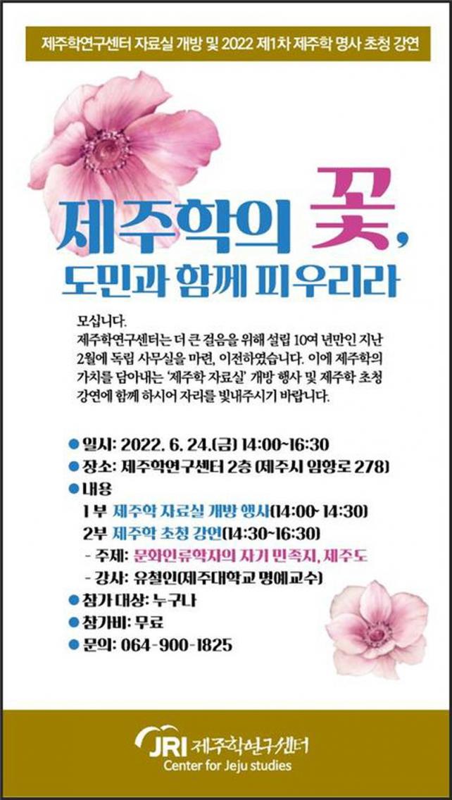 2ºÎ¡®Á¦ÁÖÇÐ ¸í»ç ÃÊû °¿¬¡¯Àº ÃÖ±Ù ¹®ÈÀηùÇÐÀÚÀÇ Àڱ⠹ÎÁ·Áö Á¦ÁÖµµ¸¦ Ãâ°£ÇÑ À¯Ã¶ÀÎ Á¦ÁÖ´ëÇб³ ¸í¿¹±³¼ö°¡ ¿¬»ç·Î ³ª¼ ±×µ¿¾ÈÀÇ Á¦ÁÖÇÐ ¿¬±¸ ¼º°ú¿Í ¿¬±¸ °úÁ¤ µî°ú °ü·ÃÇÑ À̾߱⸦ Ç®¾î³õ´Â ÀÚ¸®´Ù.
