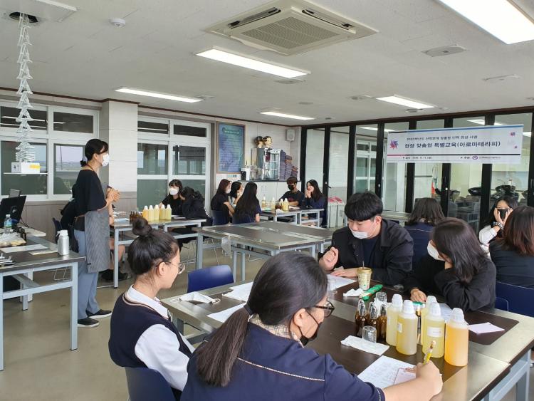 [Á¦ÁÖµµ¹Î½Å¹® = ¿ÀÁØÇõ ±âÀÚ] Çѱ¹ºäƼ°íµîÇб³(±³Àå È«³²È£)´Â 2020. 9. 11.(±Ý) 3Çгâ Çлý¸ÂÃãÇü Àη¾缺 »ç¾÷ ´ë»óÀÚ 20¸íÀ» ´ë»óÀ¸·Î ÇöÀå ¸ÂÃãÇü Ưº°±³À°(¾Æ·Î¸¶Å×¶óÇÇ ÇÁ·Î±×·¥)À» ½Ç½ÃÇÏ¿´´Ù. ÇöÀå ¸ÂÃãÇü Ưº°±³À°(¾Æ·Î¸¶Å×¶óÇÇ ÇÁ·Î±×·¥)Àº ¿ÜºÎ°­»ç¸¦ ÃÊûÇÏ¿© ÇлýµéÀÌ ´Ù¾çÇÑ ºÐ¾ßÀÇ »ê¾÷ü ÇöÀå¿¡¼­ Ȱ¿ëÇÏ´Â È­ÀåǰÀÇ È°¿ë¹ý°ú ½Ã¼ú¹ýÀ» ÀÍÇô Àü¹®¼ºÀ» Çâ»ó½Ãų ¼ö ÀÖµµ·Ï ¿î¿µÇÏ¿´´Ù. À̹ø ÇöÀå ¸ÂÃãÇü Ưº°±³À°(¾Æ·Î¸¶Å×¶óÇÇ ÇÁ·Î±×·¥)Àº ¾Æ·Î¸¶Å×¶óÇǸ¦ Ȱ¿ëÇÑ È­Àåǰ¿¡ ´ëÇÏ¿© ÀÌÇØÇÏ°í ¾Æ·Î¸¶Å×¶óÇǸ¦ Àû¿ëÇÑ ÇǺι̿ë Á¦Ç°À» Á¦ÀÛÇÏ´Â ½Ã°£À» °¡Á³´Ù. È«³²È£ ±³ÀåÀº ¡° ÇлýµéÀÌ È­Àåǰ »ê¾÷ÀÇ ½Ç¹« ÇöÀå ÀûÀÀ ´É·ÂÀ» Çâ»ó½Ã۰í Àü¹® ±â¼úÀ» ½ÀµæÇÏ´Â À¯ÀÍÇÑ ½Ã°£À» ÅëÇÏ¿©, ¾ÕÀ¸·ÎÀÇ Áø·Î ¼±Åÿ¡ µµ¿òÀÌ µÇ¾úÀ¸¸é ÁÁ°Ú´Ù.¡±¶ó°í ¸»ÇÏ¿´´Ù.