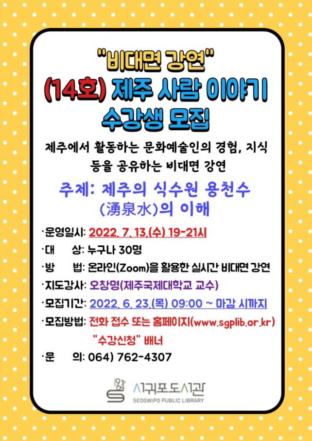 ¼±ÍÆ÷µµ¼°ü, (14È£)¡®Á¦ÁÖ »ç¶÷ À̾߱⡯¼ö°»ý ¸ðÁý